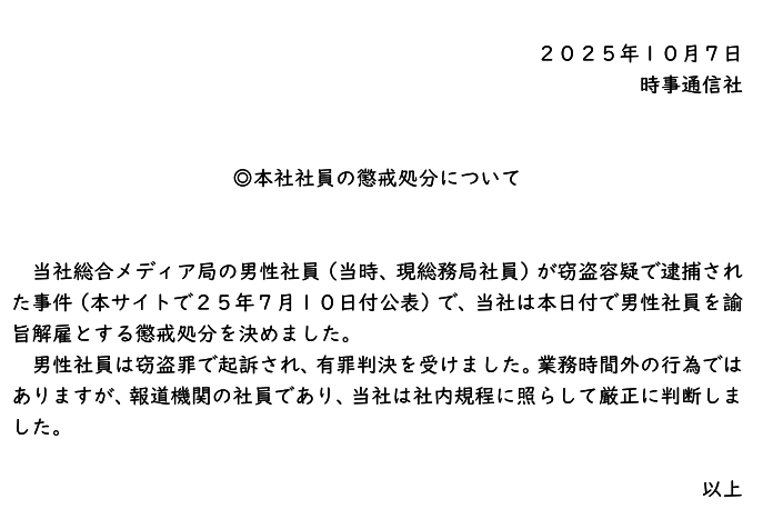 この件もテレビはダンマリだったのかアリバイ報道はあったのかどうなのか🤔 #時事通信社 #マスコミ #信頼 x.com/henachoco_mote…