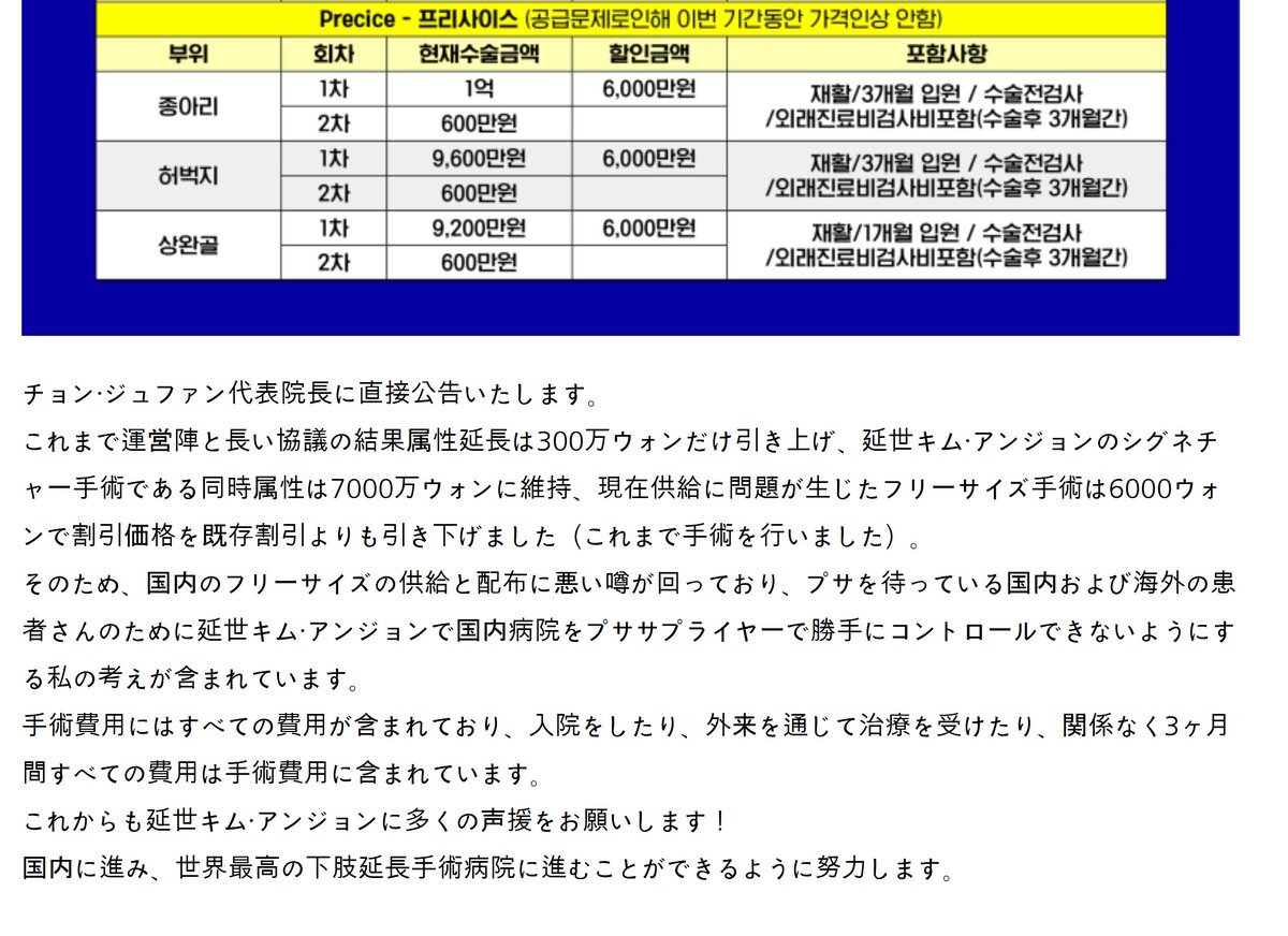 プリサイス供給問題時で手術できないのに、手術価格を6500万Wから、プリサイス原価の6000万Wに更に値下げ 実現不可能な価格で予約金2000万Wを振り込ませ、そのまま計画倒産はこの不可解な値下げ予約金振り込みを煽ったで筋が通る しかも「これまで手術を行いました」と自分からアリバイを主張している pic.x.com/PJlsqTxxgQ x.com/meichanpokemon…